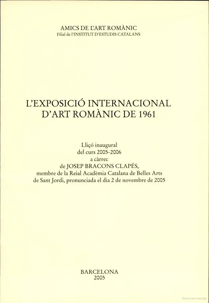 L'exposició Internacional D'art Romànic De 1961 : Lliçó Inaugural Del Curs 2005-2006 A Càrrec De Jos