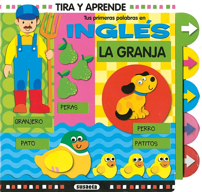 Una estupenda colección de libros interactivos para que los niños aprendan inglés de una forma divertida. Los adultos pueden leer con ellos las palabras en español de cada página, tirar de la flecha y ver la traducción en inglés. También pueden jugar juntos a memorizar las palabras y tirar de la flecha para ver quién ha acertado.